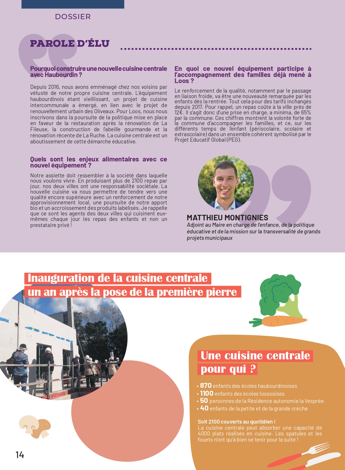 En ce vendredi 3 octobre, la nouvelle cuisine centrale sera inaugurée officiellement. Le samedi 4 est dédié quant à lui aux familles qui souhaitent la visiter et mieux comprendre le fonctionnement en cuisine, pour desservir les villes de Loos et d'Haubourdin.