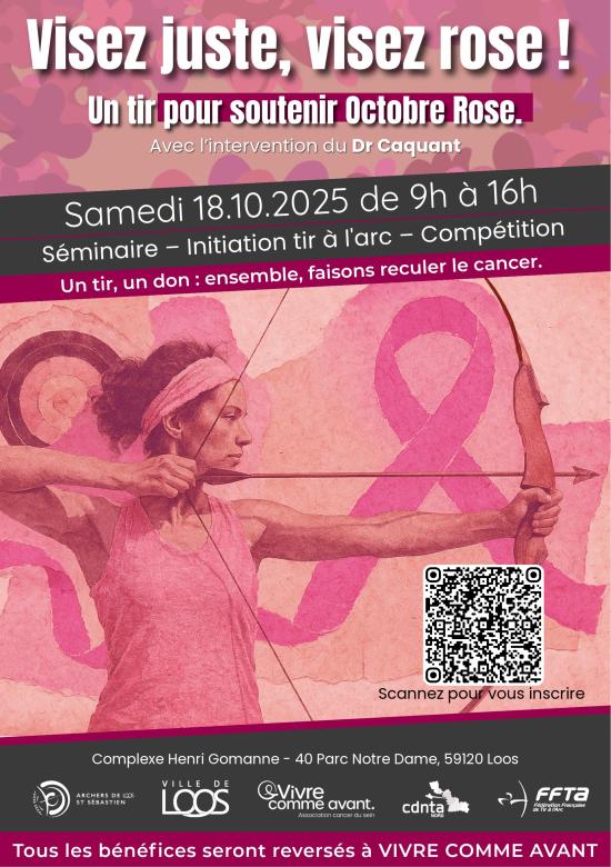 Chaque tir = un don pour soutenir la lutte contre le cancer du sein. L’intégralité des bénéfices sera reversée à une association engagée contre le cancer du sein : "Vivre comme avant". Mobilisons-nous ensemble : inscriptions via le QR Code ou directement en ligne sur notre page lien ."