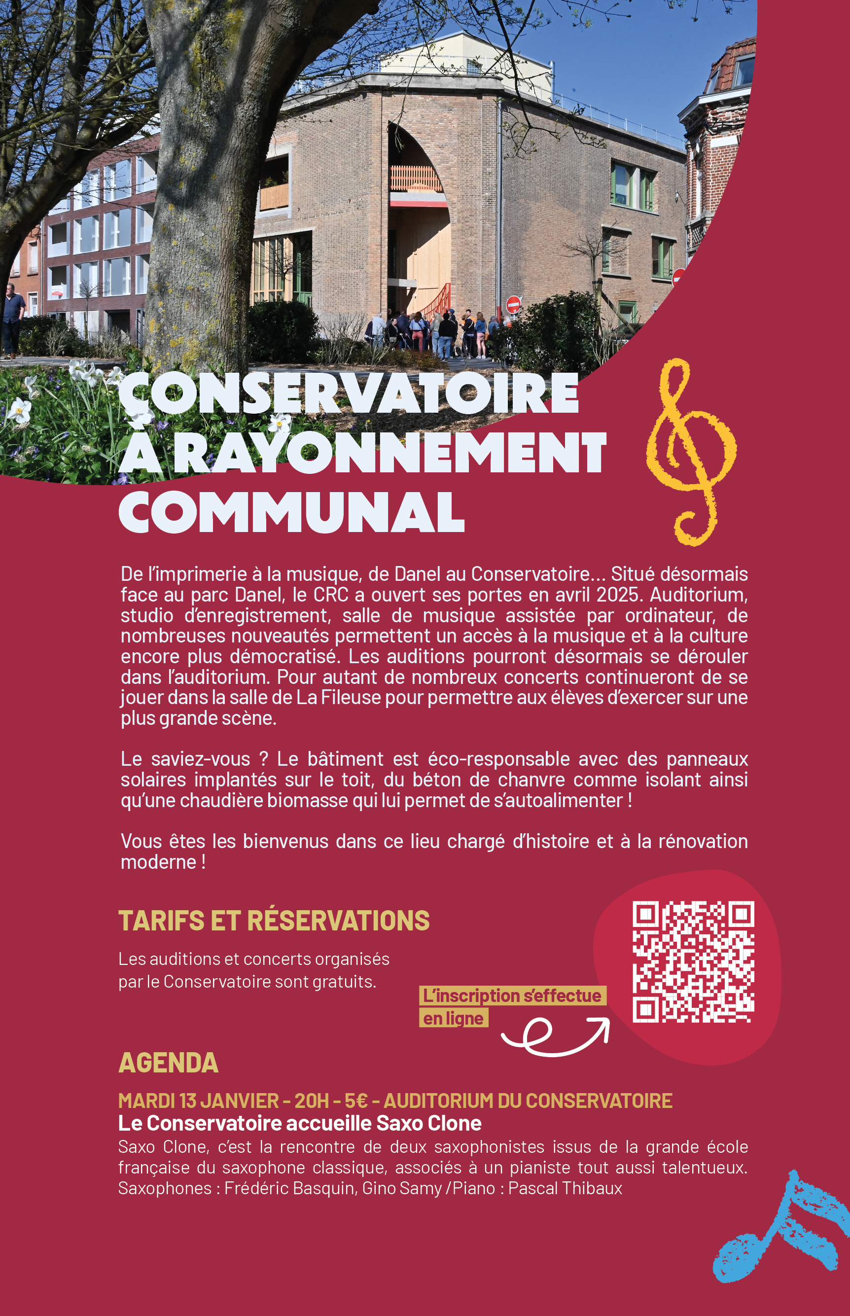 Le Conservatoire a déménagé en avril 2025 dans les anciennes imprimeries Danel, avec de nombreux nouveaux équipements.