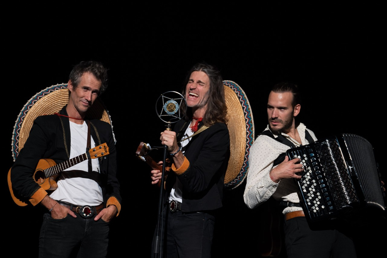 Distribution : Alexandre Humbert (voix, ukulélé, percussions) / Romain Delebarre (voix, ukulélé, Ubass, percussions) / Thibault Dille (voix, accordéon) / Son : Kévin Devillard / Lumière : François Frémy / Costumes : Marianne Mérillon / Regard extérieur : Antonin Vanneuville